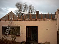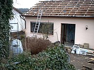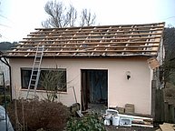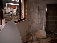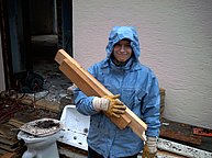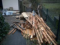 Zuerst mußten wir ein kleines Häuschen auf unserem Bauplatz abreißen. Viel Holz und eine Menge Schrott und saukalt.