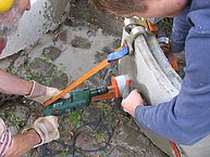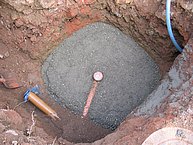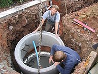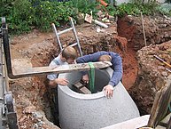Erst wird der Schacht für den Hausanschluß gesetzt...
