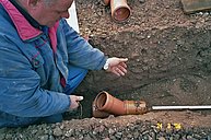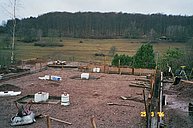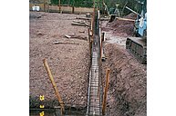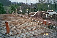 Vor der Bodenplatte mußte der Kanal verlegt werden. Dann wurde eingeschalt und bewehrt.