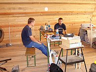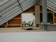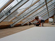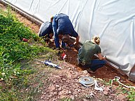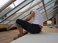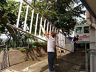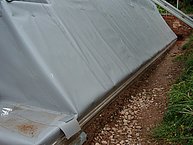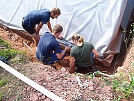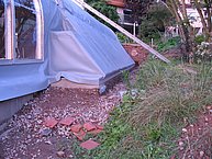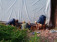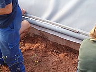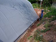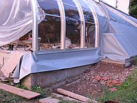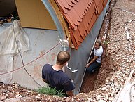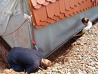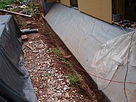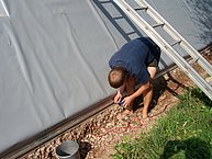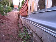 Jetzt geht es endlich ans Trockenlegen des Hauses. Aber zuerst einmal muß noch die Folie befestigt werden.