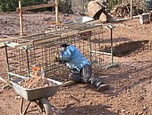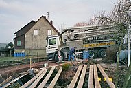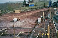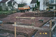 Nach langen Einmeßarbeiten war die Position unseres Hauses klar und es wurde ausgehoben und Eisen geknippelt.
