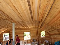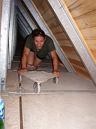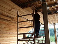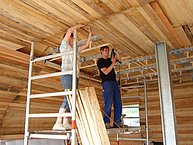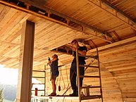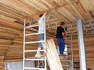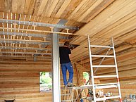 Jetzt kommt die Deckenschalung und die Verkleidung der Fenster und der Frontseite