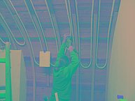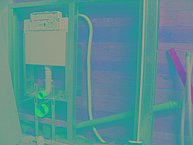 Den WC-Spülkasten haben wir montiert und die Konstruktion für den Waschtisch und Spielgelschrank steht.