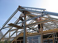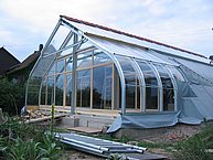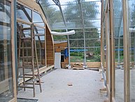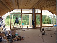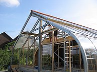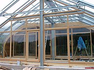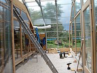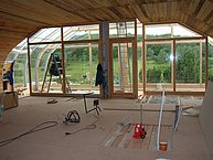 Beim Einsetzen der Fenster und der Wintergartenelemente mußten wir mal ausnahmsweise nichts selber schaffen, sondern durften nur zuschauen.